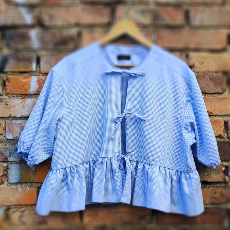 Wyszukuję męskie koszule: luźne, w kwiaty, nietypowe wzory, idealne na coś nowego. A w pracowni dostają nowe życie jako kobiece koszule z odzysku — z falbankami, bufkami, haftami i mnóstwem charakteru. Niepowtarzalne, jak Ty i ja.