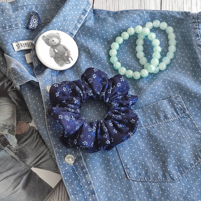 Gumka uszyta z tkaniny z drugiego obiegu: mikrofibra z niechcianego krawata. Odpowiednia do włosów grubych, włosów kręconych oraz włosów długich.