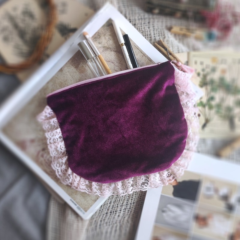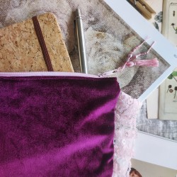 Postawiłam na głębokie, soczyste bordo w welurowym wydaniu. Ten materiał jest tak miły, że będziesz chciała go głaskać (nie oceniam, sama to robię ;)). Żeby nie było zbyt poważnie, dodałam falbankę z różowej koronki. Efekt? Coś pomiędzy "elegancką damą" a "dziewczyną, która zawsze wie, czego chce".