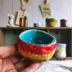 Tu: masywna, kolorowa miseczka. Super sprawdzi się na drobną biżuterię lub jako świecznik na podgrzewacz.